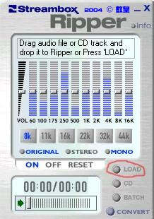 一、在StreamBox Ripper中,選取"LOAD"(圖紅圈示),接著尋找要轉換的音樂檔。