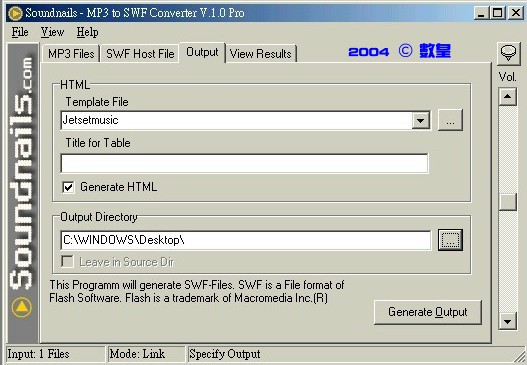 Soundnails 能結合 MP3 及 SWF 兩者的優點,將 MP3 音樂轉成 SWF 格式在網路上播放,而且它還能將轉換後的作品,輸出成美觀的 HTML